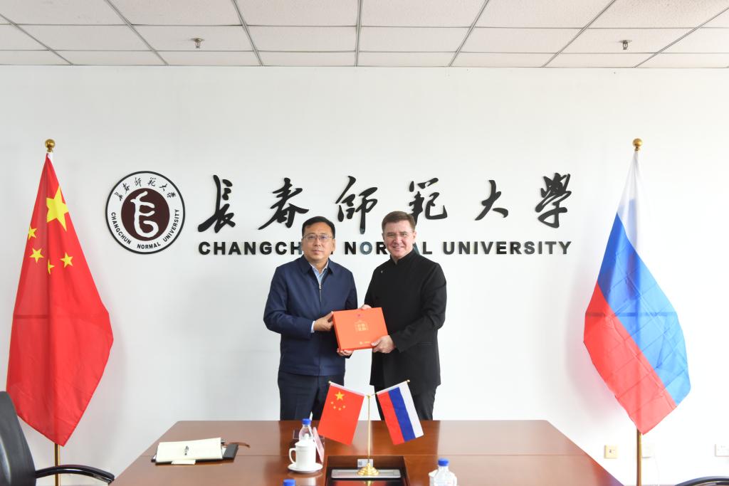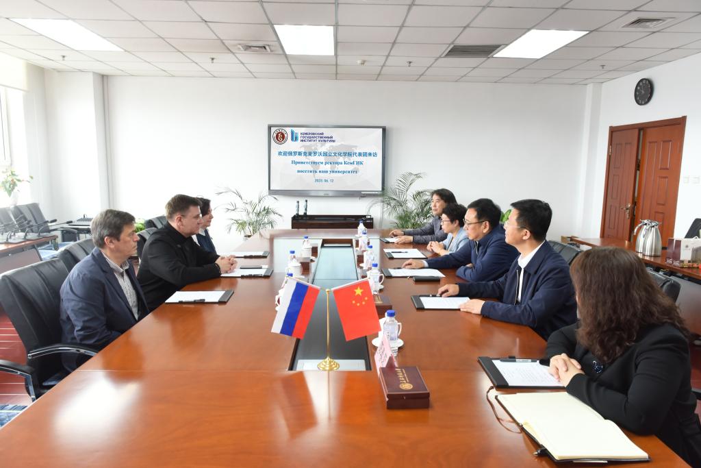 国际合作与交流处、音乐学院、美术学院等相关部门和学院负责人,以及正在我校授课的克麦罗沃国立文化学院教师参加会见。