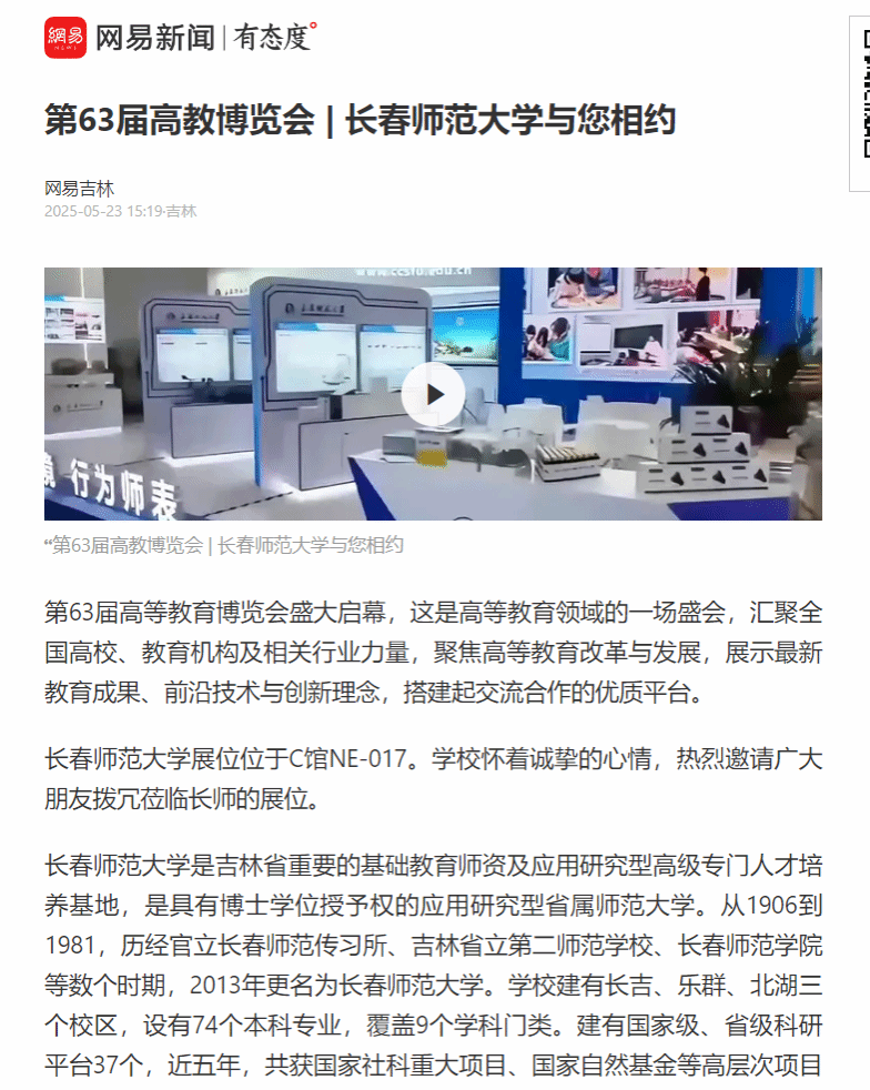 5月23日至25日,第63届高等教育博览会在长春举行。久久久久国产成人精品亚洲综合_亚洲精品国产A久久久久久_精品亚洲日韩国产精品一区二区三区_AV无码久久无码_国产精品国产亚洲精品看不卡_午夜亚洲精品国产乱码久久久人妻_久久久99无码精品一区二区三区_欧美日韩精品国产精品一区二区三区高清免费携13项科研教育创新成果,在C馆展位参加展览。展会期间,吉林电视台、吉林教育电视台、网易新闻、长春电视台等多家媒体对我校展示的科研教育创新成果进行报道。具体如下。